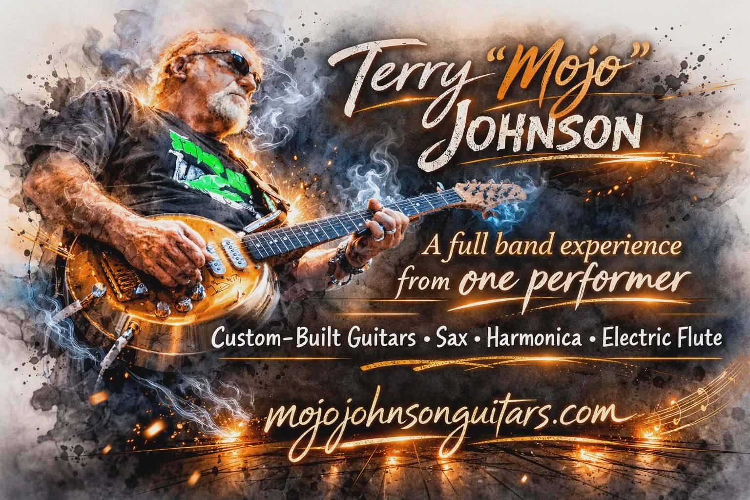 Terry Mojo Johnson inspires and connects with audiences all over the world. craftsmanship play as uniquely as their design and have voices all their armonica, saxophone, el. flute and sing to my own drums and bass tracks to give it a full band sound. These one-of-a-kind guitars have a sound all their own.